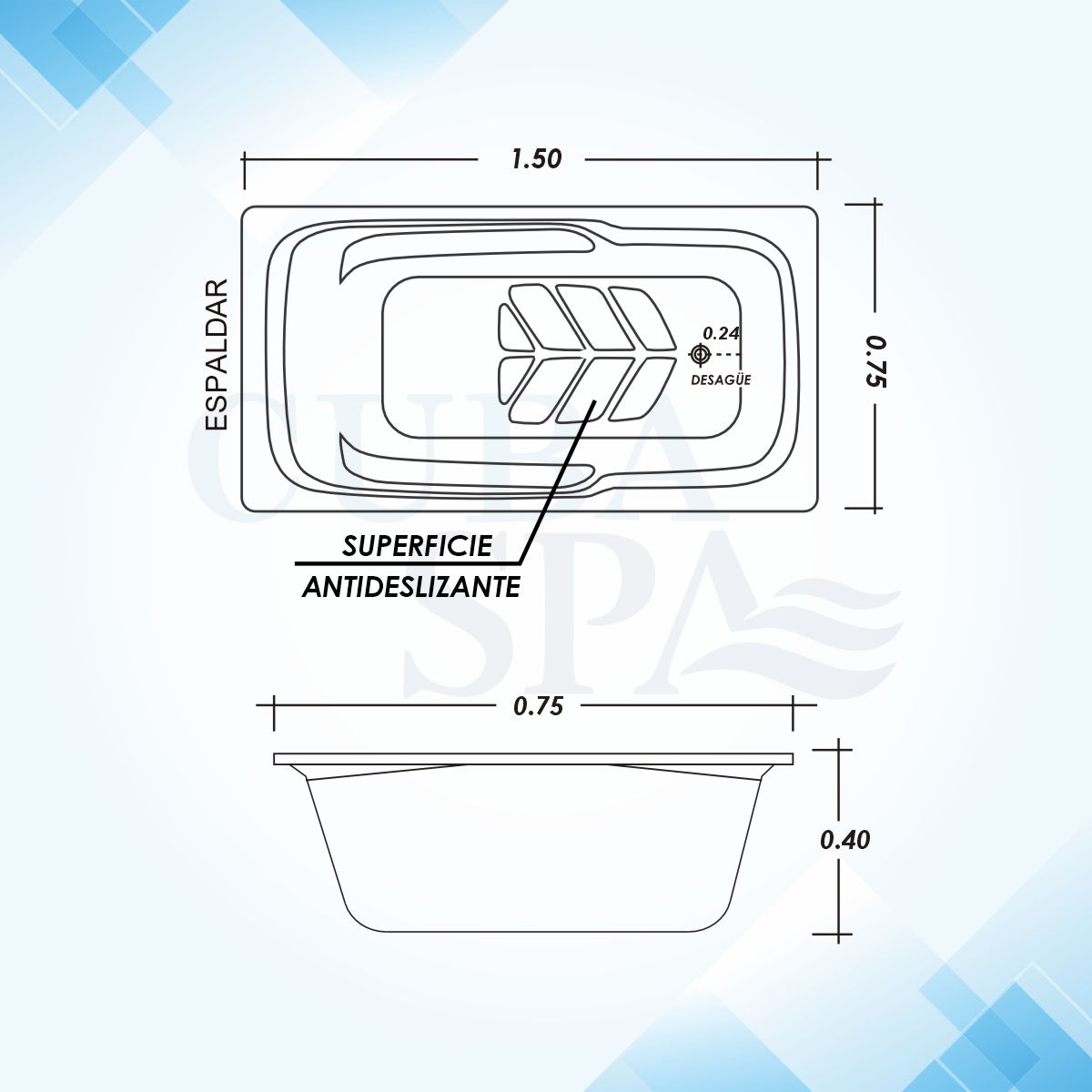 Especificaciones: Tina Bañera – MAGIA III 1.50*0.75